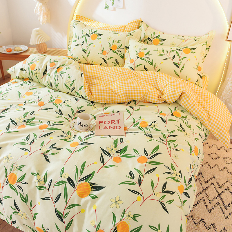 ins清新风AB版简约全棉四件套【全棉/蜜桔】 |