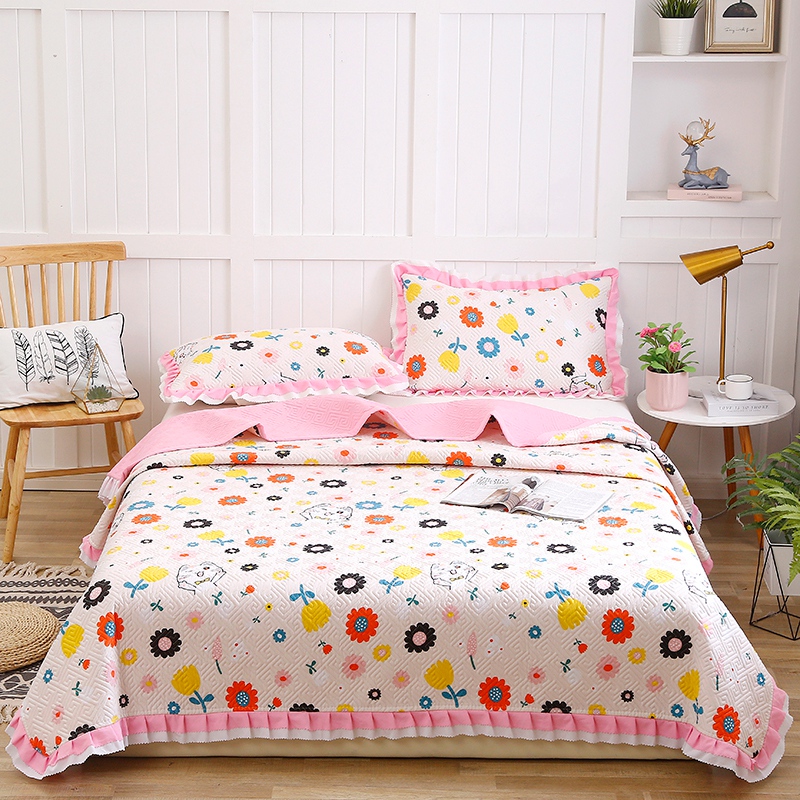【三层复合】全棉夹棉绗缝床盖三件套【全棉/小花猫】 |