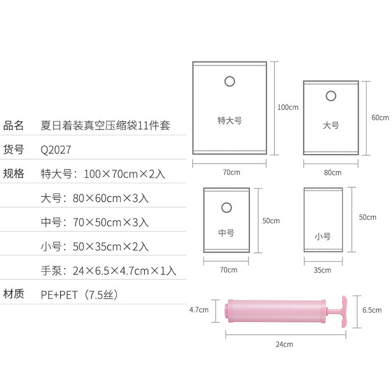 夏日着装真空压缩袋11件套【PE PET(7.5丝)/图片色】 |