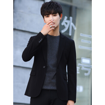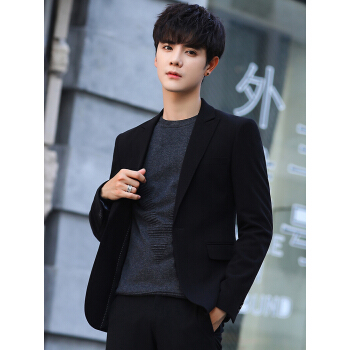 西服男2020新款男士休闲西装潮流帅气商务小西装男韩版修身青年春秋季外套男单西纯色上衣套装 黑色单西 XL |