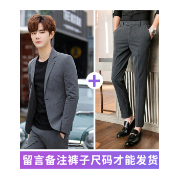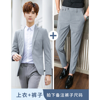 布彦西服男休闲西装修身韩版男士小西装外套上衣薄款春夏季潮流拼接商务正装套装婚礼新郎伴郎服 浅灰色套装 L |
