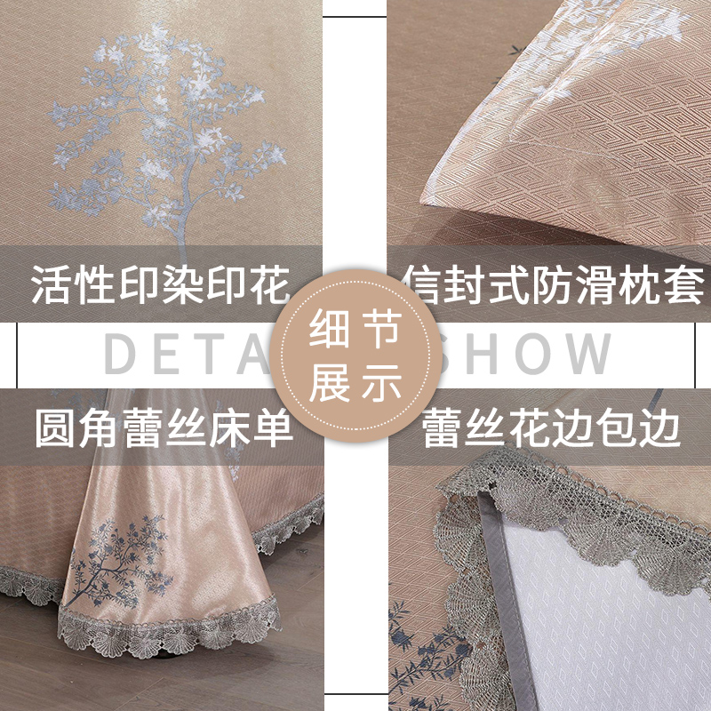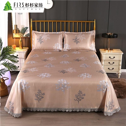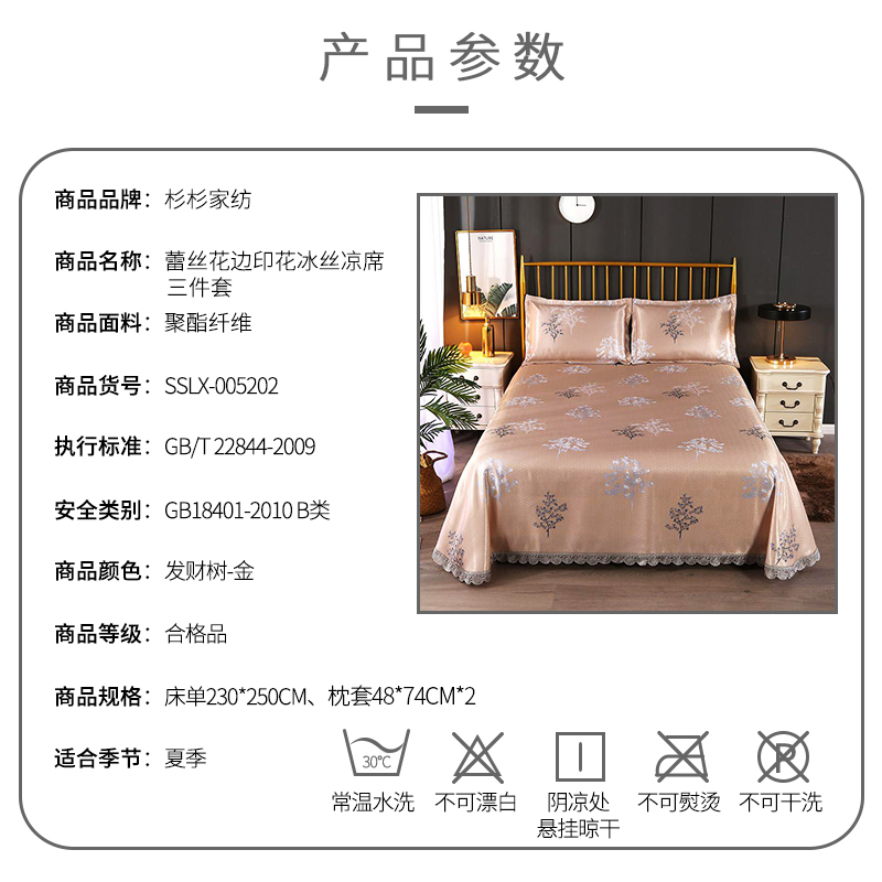 蕾丝花边印花冰丝凉席三件套【聚酯纤维/发财树-金】 |