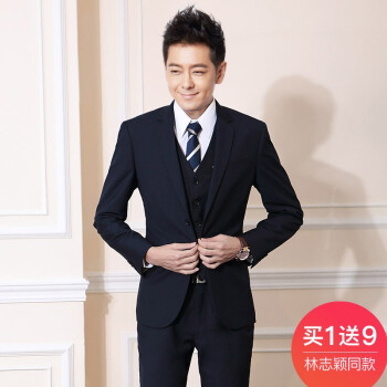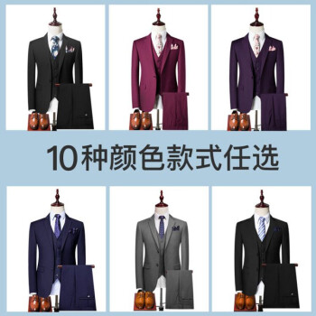 罗蒙ROMON西服套装男士三件套高档定制小西装修身韩版商务正装婚礼服结婚新郎伴郎服 [11件套]一扣贵族黑色上衣+西裤+衬衫 175/L |