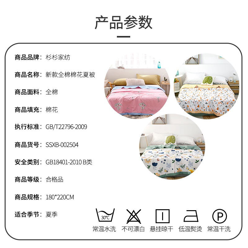 全棉棉花夏被【面料:全棉填充:棉花/颜色自选】 |