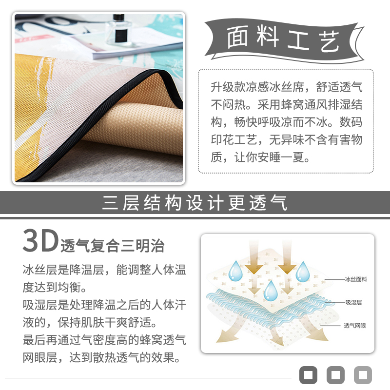 大版冰丝席凉席三件套【聚酯纤维/多彩夏日】 |