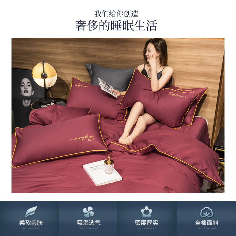 40s贡缎长绒棉四件套【全棉/紫嫣红】 |