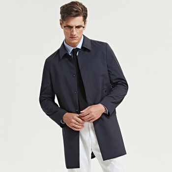 七匹狼风衣 男士春秋季商务休闲外套翻领薄款中长款夹克中青年长袖男装 101(藏青) 175/XL |