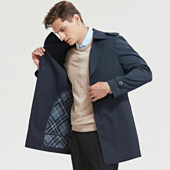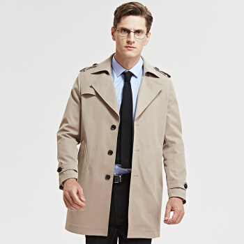 七匹狼男士休闲风衣 中长款男装2020年春季新品净色复合面料单排扣翻驳领外套 701(卡其) 180/2XL |