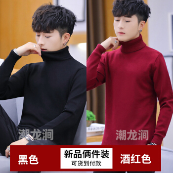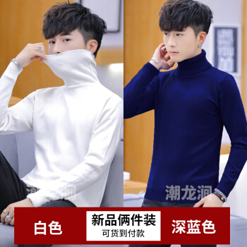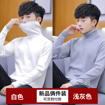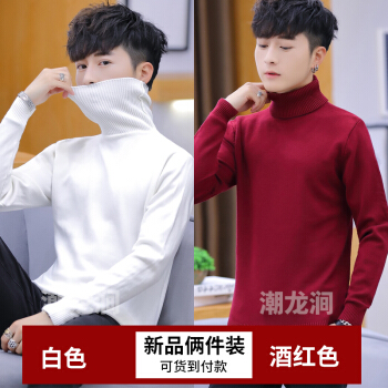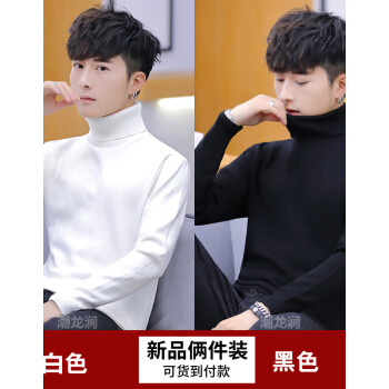 【超值 2件装】毛衣男2020冬季男士高领针织韩版修身打底衫特惠百搭线衣服男装城市前端杀秒 白色+黑色 XL |