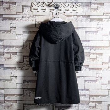 潮型库 风衣男外套中长款韩版春秋季2020春季新款夹克男春秋帅气青少年连帽大衣 107黑色 4XL |