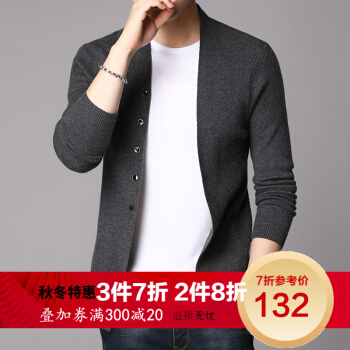 富贵鸟春秋男士针织衫开衫休闲V领薄款毛衣中年韩版修身打底外套男父亲节衣服 黑色 170/M 刑释毛衣 |