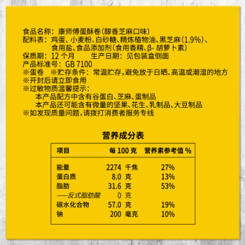 康师傅 蛋酥卷鸡蛋卷营养早餐办公室休闲零食小吃饼干蛋糕点心芝麻味 108g |