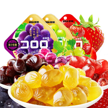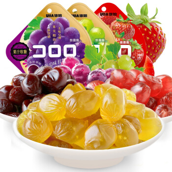 悠哈(UHA)网红零食 果汁软糖 葡萄/白葡萄/草莓味糖果 组合装 52g*3 |