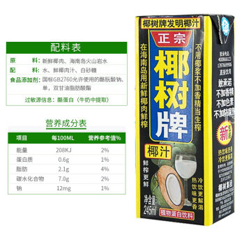 椰树 椰汁正宗椰树牌椰子汁饮料 六连包 245ml*6盒/组 植物蛋白饮料 |