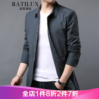拉蒂奢品RATILUX品牌中长款风衣男韩版商务休闲男装春秋翻领帅气潮流百搭夹克秋季外套 灰色(春秋常规款) 175/L |