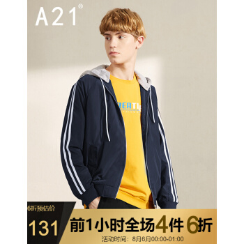 以纯线上品牌A21春季2020年新款男装 运动风衣男士可拆连帽外套长袖潮男棒球服R401114019 深蓝 170/84A/M |