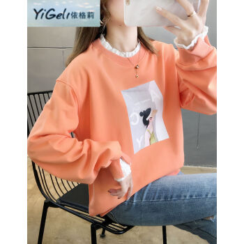 依格莉中学生少女秋天流行宽松卫衣女2020新款韩版高中初中生ins印花字母拼色大码圆领薄款长袖卫衣女 橙色 M |