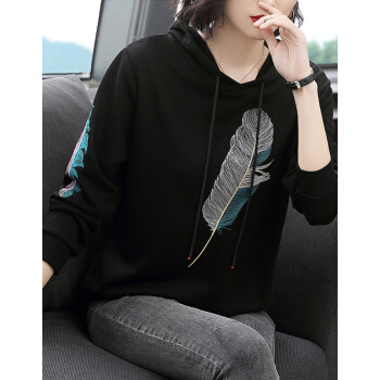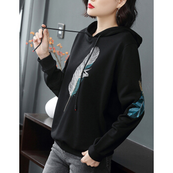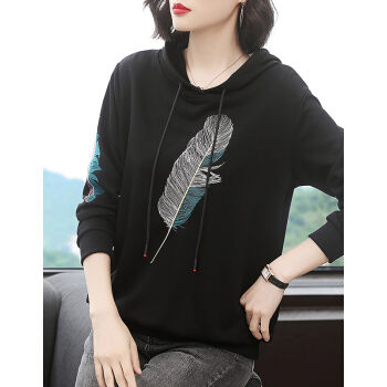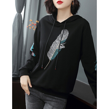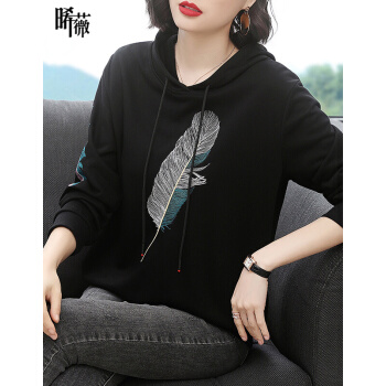 【精选好货】晞薇女士卫衣2020春秋季新款韩版带帽宽松百搭四十岁中年妈妈装慵懒洋气绣花上衣女 黑色 请拍正确尺码或咨询客服 |
