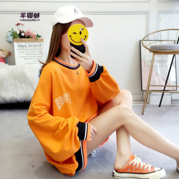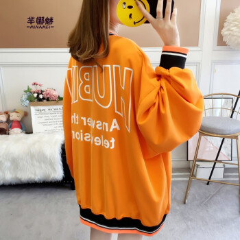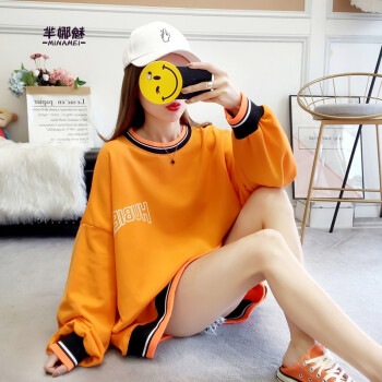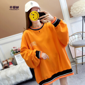 芈娜魅卫衣女中长款宽松显瘦2020秋季学生新款韩版外套大码慵懒风学院风时尚字母长袖 图片色 请拍正确尺码 |