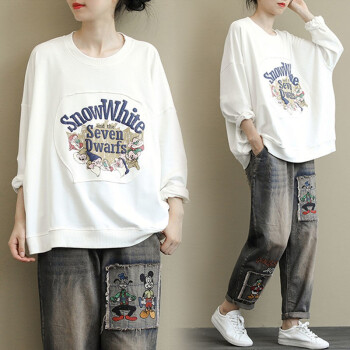 卫衣女宽松韩版学生文艺长袖2020秋冬季加绒休闲印花圆领套头上衣外套 粉紫色 XL110-125斤 |
