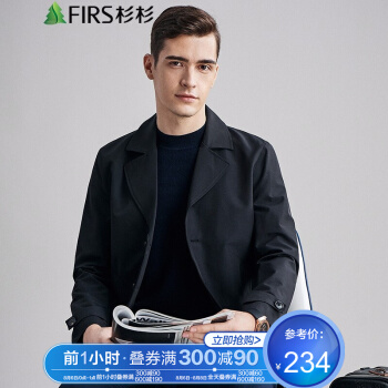 FIRS杉杉 风衣男 2020秋季新款商务休闲外套男士西装领轻薄款上衣夹克男 FDJ20382208 黑色 170 |