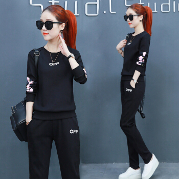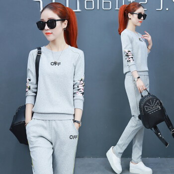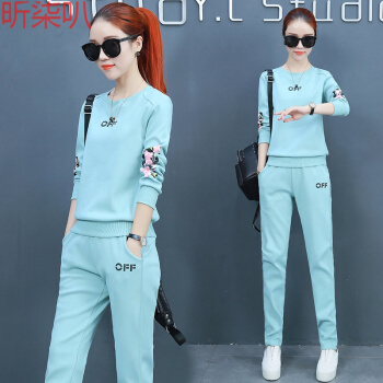 昕柒叭纯棉运动服套装女2020春季新款学生韩版宽松休闲卫衣两件套潮 蓝色 L(建议98~110斤) |
