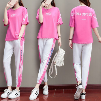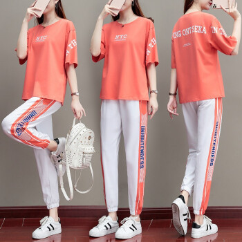 梓龄 休闲运动套装女2020夏新款休闲时尚卫衣休闲裤女韩版夏季宽松跑步运动服两件套潮 桔色 请拍对应尺码 |