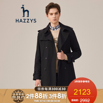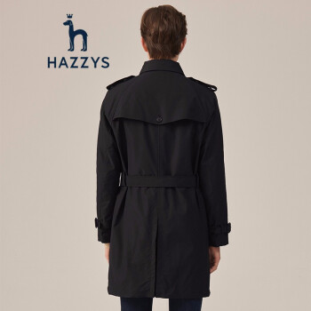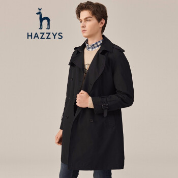 【商场同款】哈吉斯HAZZYS 秋季风衣男时尚简约英伦风衣外套ASWZH09CH01 黑色BK 175/96A 48 |