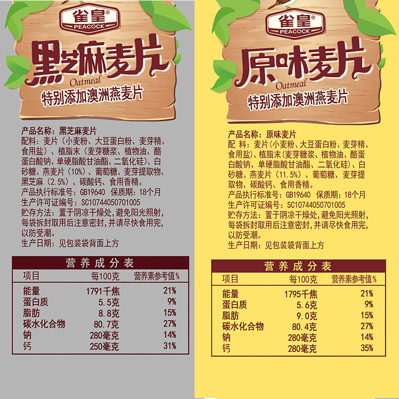 原味高钙燕麦片&黑芝麻燕麦片组合 |