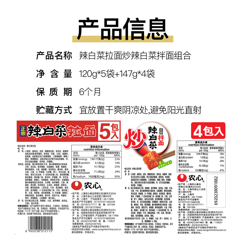 农心辣白菜拉面方便面&农心炒辣白菜拌面(含韩国切片泡菜)即食面 |