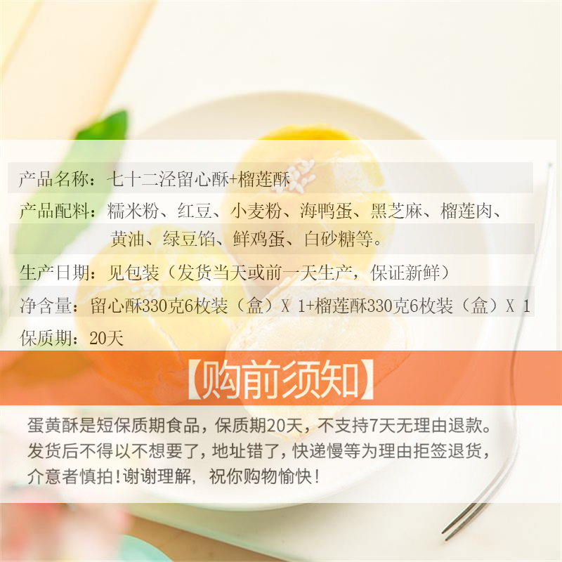 原生态海鸭蛋红豆味雪媚娘留心酥&榴莲酥组合 |