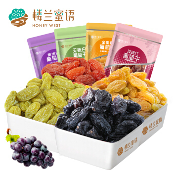 楼兰蜜语 四色葡萄干900g 蜜饯果干 玫瑰红黑加仑金凰后无核白葡萄干 新疆特产 |