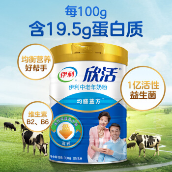 伊利欣活 中老年奶粉听装 奶粉 营养早餐 益生菌奶粉 高钙 老年 冲饮 900g罐装 |
