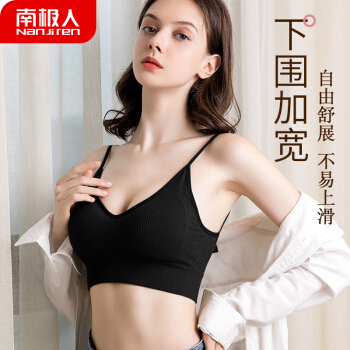 南极人抹胸文胸无钢圈运动内衣薄杯裹胸夏季聚拢美背冰丝吊带少女瑜伽睡眠胸罩3111款黑色 均码(80-140斤) |