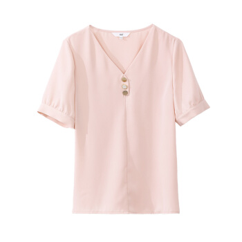 OSA欧莎气质短袖雪纺衫女遮肚子2020新款夏季欧洲站洋气小衫时尚上衣 粉色 S |