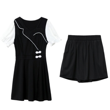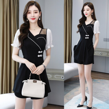 妮符时尚小个子流行洋气职业套装女2020年夏季女装新款雪纺衫女短裤两件套女潮 黑色 M |