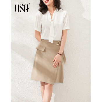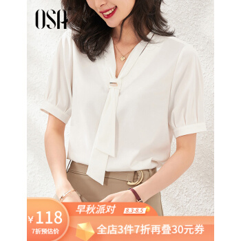 OSA欧莎白色雪纺衫女时尚夏装2020新款v领洋气小衫时尚遮肚子短袖上衣 白色 S |