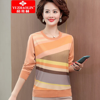 俞兆林中老年人女装妈妈装秋冬装长袖圆领针织t恤打底衫衣服女QQ9169 橙色 请下单正确颜色尺码 |