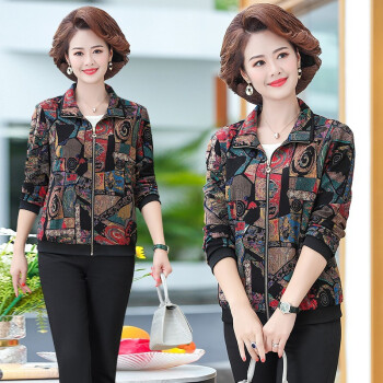 俞兆林中老年人女装妈妈装秋冬装拉链翻领印花外套衣服女LY2110 花色 请下单正确颜色尺码 |