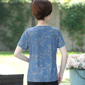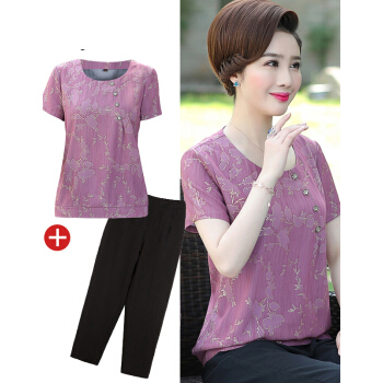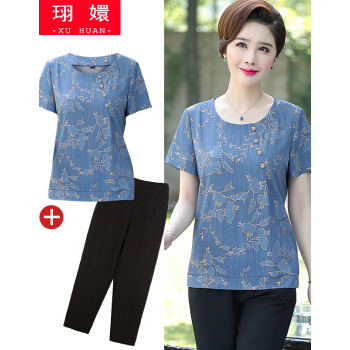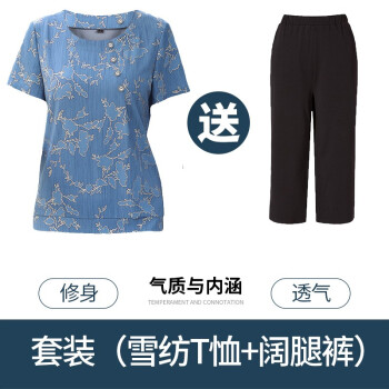 珝嬛中老年女装2020夏装新两件套4050岁中年妇女阔太太短袖t恤女上衣裤子大码妈妈装雪纺衫奶奶套装 蓝色 请拍自身对应码数 |