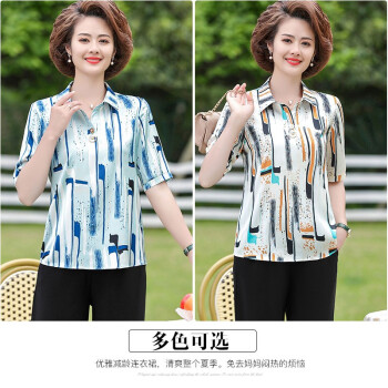 黛苇中老年女装妈妈装夏装洋气套装2020新款女上衣雪纺衫女短袖t恤中年小衫两件套休闲套装大码女装 卡其色(阔腿裤) XL(90-110斤) |