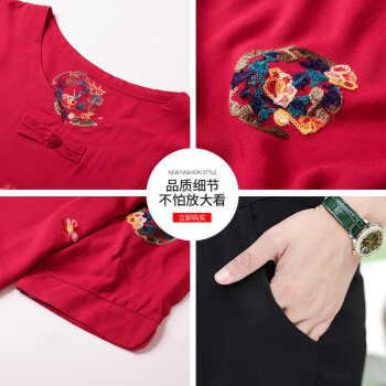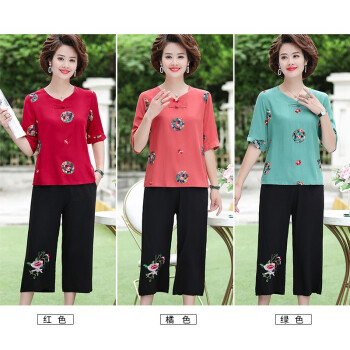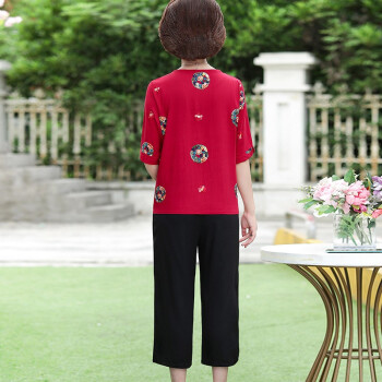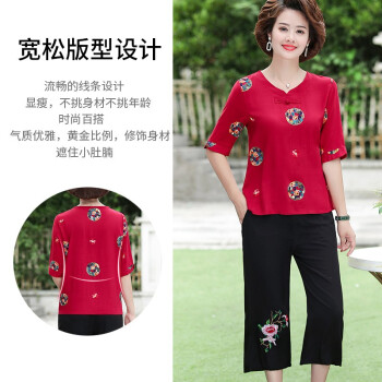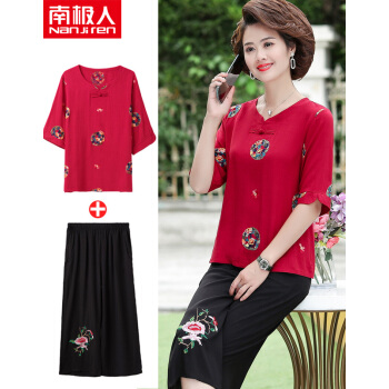 南极人 中老年女装2020夏季新款短袖妈妈套装洋气减龄棉麻两件套 红色套装 XXXL(建议体重120-135斤) |
