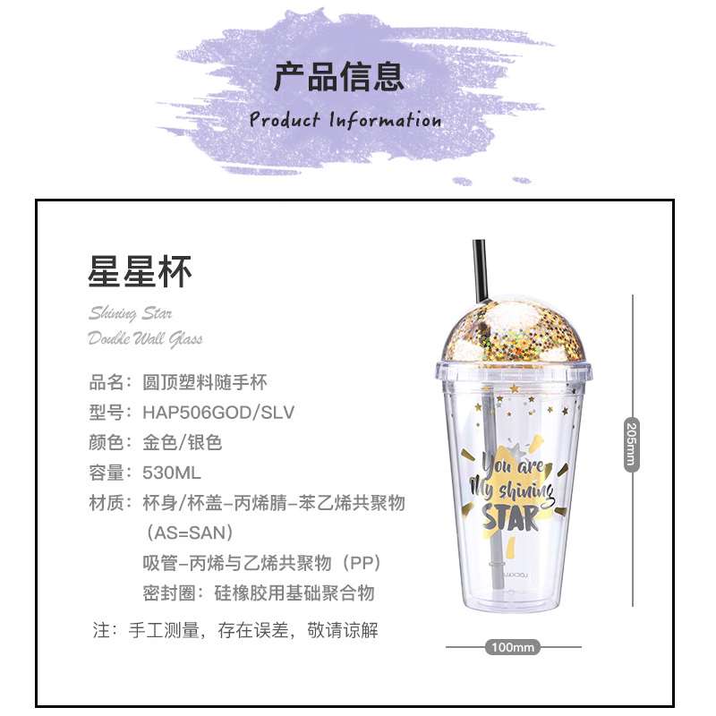 530ml少女心Ins风塑料吸管杯便携随手水杯【塑料杯/颜色随机】 |