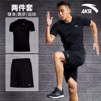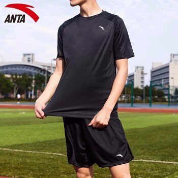 【两件套】安踏运动套装男2020年夏季短袖篮球跑步健身训练足球速干薄款运动服饰短裤 -4基础黑 L/175 |