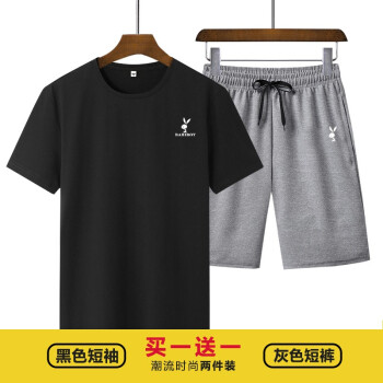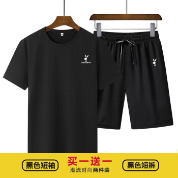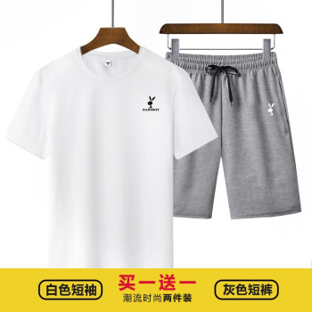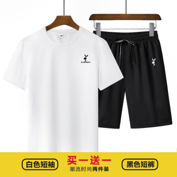 BABIBOY 2020夏季新款男士运动套装短裤男纯棉T恤男纯色圆领T恤男 白色T恤+黑裤 XL |