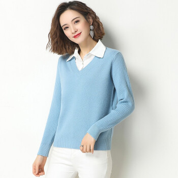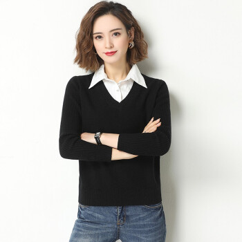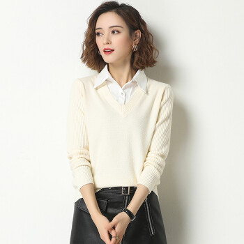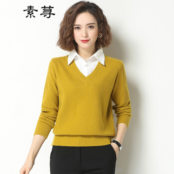 素荨针织衫女套头短款秋装2020年新款衬衫领毛衣女宽松百搭春秋打底衫 黄色15102 M |
