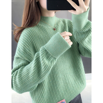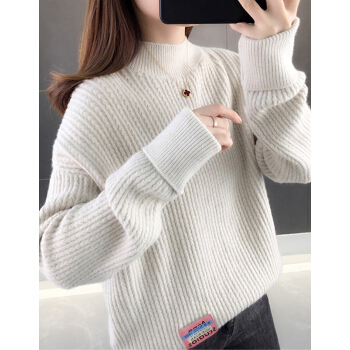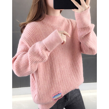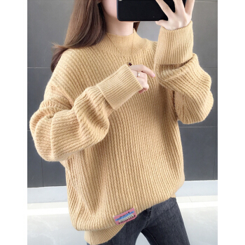 婪澈针织衫女春秋2020新款大码女装打底衫女韩版宽松百搭圆领毛衣女 黄色 L |