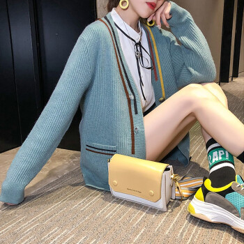 红蜻蜓 毛衣外套女2020春秋新款韩版宽松显瘦慵懒风外搭洋气针织衫开衫百搭休闲上衣潮 WL727 绿色 均码 |