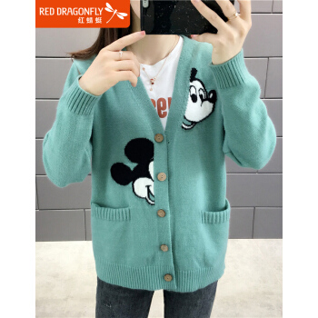 红蜻蜓 针织衫女2020新款秋冬季甜美气质韩版女装开衫V字领宽松型针织毛衣女外套 WL172 绿色 均码 |