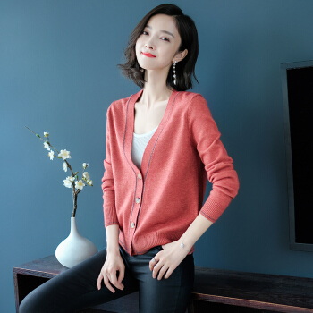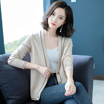 歌米拉 针织衫女开衫春秋短款上衣秋装2020年新款洋气外搭薄款女士毛衣小外套 灰燕麦 M |